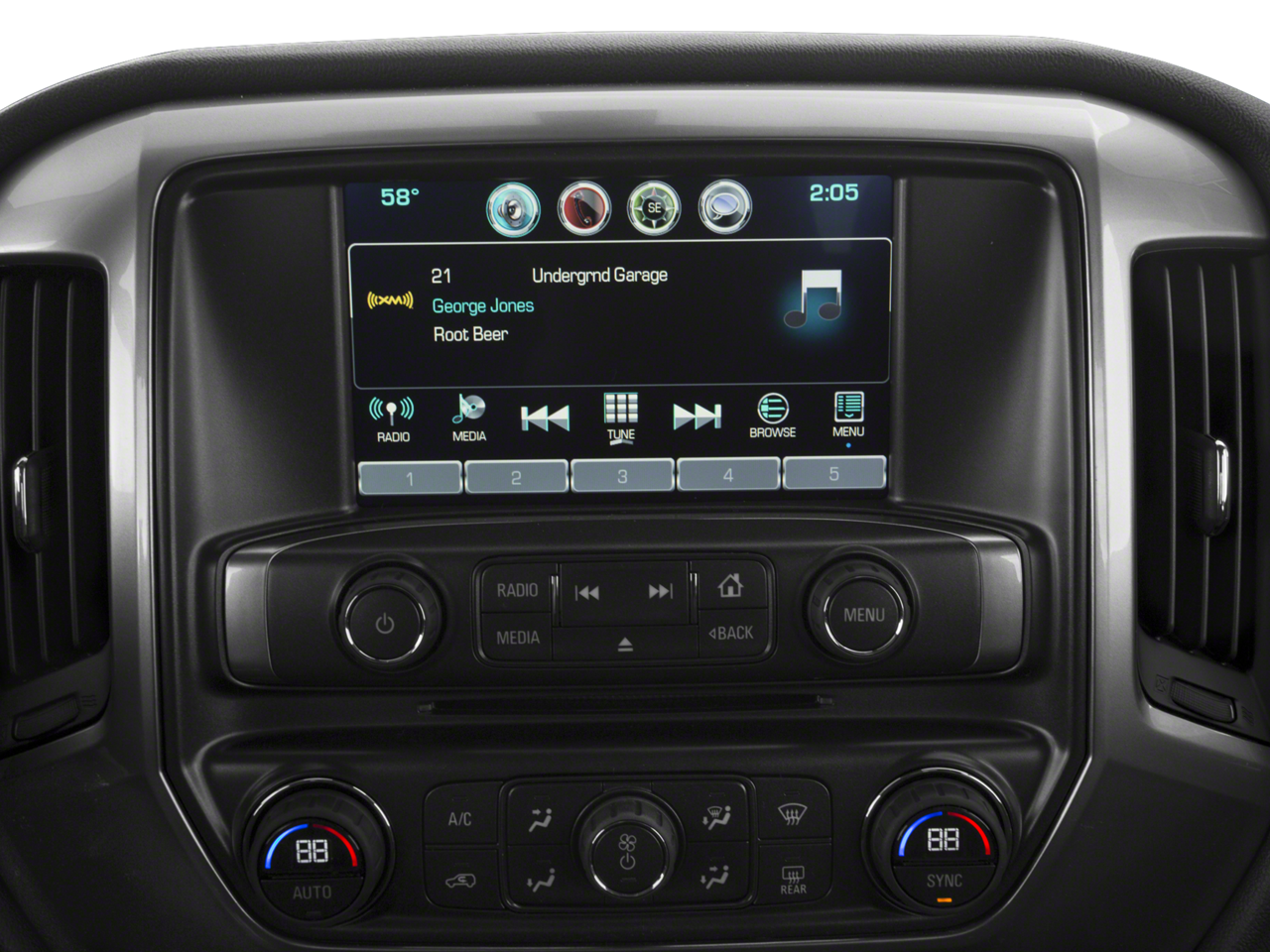 - Audio system, Chevrolet MyLink Radio with 8" diagonal color touch-screen, AM/FM stereo with seek-and-scan and digital clock, includes Bluetooth streaming audio for music and select phones; USB ports; auxiliary jack; voice-activated technology for radio and phone; and Shop with the ability to browse, select and install apps to your vehicle. Apps include Pandora, iHeartRadio, The Weather Channel and more.